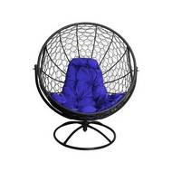Вращающееся кресло с ротангом (черное с синей подушкой)