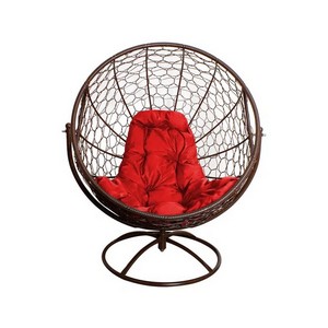 Вращающееся кресло с ротангом (коричневое с красной подушкой)