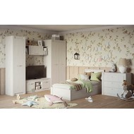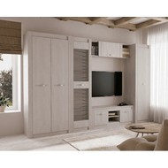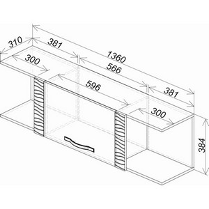 Антресоль состоит из полки с дверцей и двух открытых боковых полок.