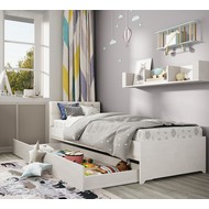Комплектация - полка навесная молокай 09, кровать одинарная 90 см молокай 04, ящик прикроватный молокай 05, комод комбинированный молокай 11.