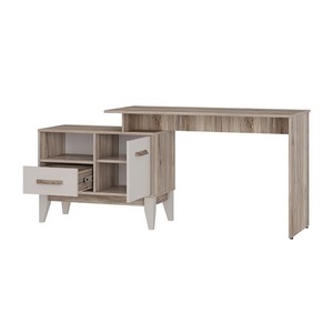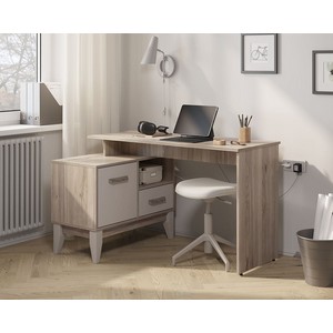 Письменный стол Скандика имеет удобную рабочую поверхность и встроенную тумбу, которая состоит из просторного отсека за дверцей, ящика и одной открытой полки.