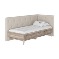 Односпальная кровать Скандика 90х200 комплектуется проложками из ДСП и оснащена мягким изголовьем и боковиной, которые крепятся на стену.