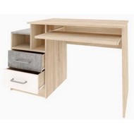 Стол оснащён тумбой с двумя выдвижными ящиками, двумя открытыми нишами-полками (над тумбой) и выдвижной полкой для клавиатуры.
