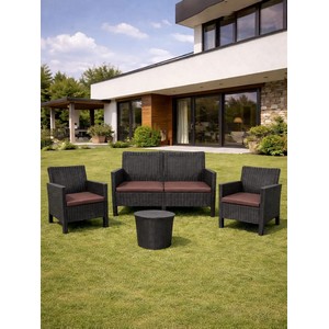 Диван двухместный садовый под ротанг СадКо (темно-серый с коричневой подушкой)