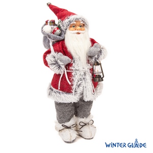 Фигурка Дед Мороз с фонарем, высота 46 см, красный/серый