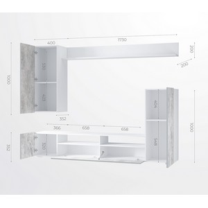 Гостиная Диаманд секция центральная белый/цемент светлый