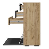Комод Мишель тип 1 КМ-12 оснащен тремя ящиками и нижней полкой с откидным фасадом.
