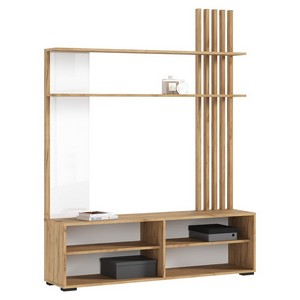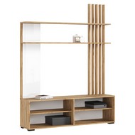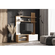 Гостиная Роджина (белый глянец, дуб крафт) — это изысканный элемент мебели. Секция предназначена для установки телевизора и оснащена полками.