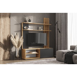Гостиная Роджина (графит, дуб крафт) — это изысканный элемент мебели. Секция предназначена для установки телевизора и оснащена полками.
