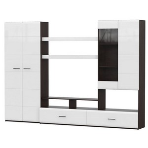 Цвет: дуб венге (корпус), белый глянец (фасад), черный глянец (ручки).
