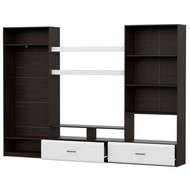 Дополнительно: тумба состоит из секции с двумя выдвижными ящиками, открытой ниши, разделенной пополам вертикальной перегородкой и надстройкой.