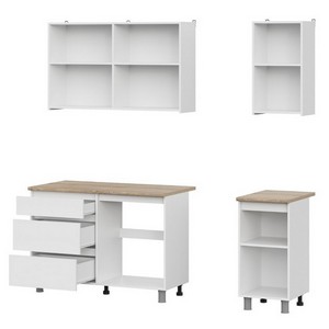 Нижний ряд состоит из модуля под мойку, модуля с выкатными ящиками и глухого шкафа.