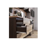 Готовая кухня Энигма выполнена в красивом сочетании цветов дуб каньон и венге, что позволяет ей гармонично вписаться в любой интерьер.