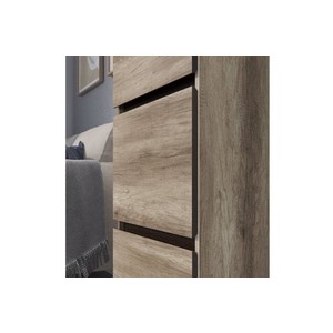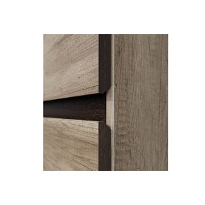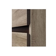 Выдвижные ящики оснащены роликовыми направляющими 450 мм и открываются за счет среза на фасадах, которые обеспечивают удобный захват, а также придают гарнитуру монолитный вид.