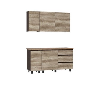 Напольные модули в комплекте со столешницей толщиной 38 мм в цвете дуб кера.