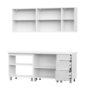 Готовая кухня Модерн New (белый/белый глянец) без столешницы станет отличным решением в том случае, если вы ищете функциональный и современный вариант кухонной мебели. Белый цвет зрительно расширяет пространство, благодаря чему кухонный гарнитур прекрасно подойдет для небольшого помещения. Фасады отличаются универсальностью, на них нанесена разметка под ручки с межцентровым расстоянием 128 мм.