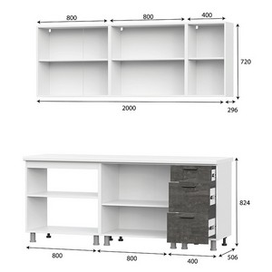 Готовая кухня Модус (белый/цемент светлый/камень темный) без столешницы отличается универсальными фасадами и наличием опор, регулируемых по высоте, в результате чего модель станет компактным и функциональным решением пространства. Кроме того, кухня входит в состав модульной системы, за счет чего вы сможете создать любую конфигурацию под нужные вам размеры.