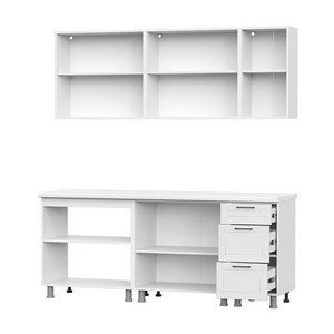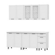 Готовая кухня Вектор (белый бланж/бланж) без столешницы является функциональным и компактным вариантом кухонной мебели. Белый цвет зрительно расширяет пространство, благодаря чему подойдет для небольшого помещения. Стеклянные фасады придают изысканность интерьеру.