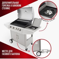 Гриль-барбекю газовый Aesto 11101 оснащен 3 основными и одной боковой горелками.