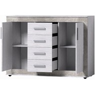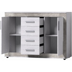 Комод оснащён 2 отделениями с распашной дверью и 4 выдвижными ящиками.