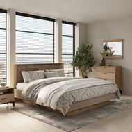 Каркас в древесном декоре эффектно сочетаются с фасадами кофейного оттенка и фрезеровкой в вертикальную полосу.
