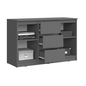 Комод Челси 1200 2 двери 3 ящика (графит) в современном дизайне. Вместительные ящики и полки позволят организовать место для хранения всех необходимых предметов.
