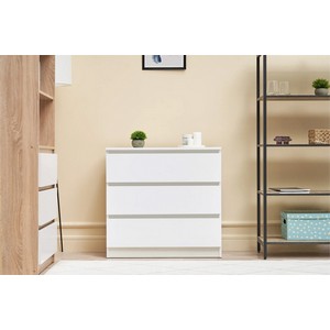 Комод Челси 800 3 ящика (белый глянец холодный, белый) в современном дизайне. Вместительные ящики и полки позволят организовать место хранения всех необходимых предметов.