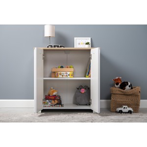 Двустворчатый комод оснащен удобными полками, обеспечивающими эффективную систему хранения.