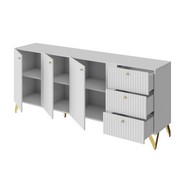 Комод объединяет три выдвижных ящика и три распашные дверцы, за которыми скрывается удобное внутреннее пространство с полками.