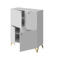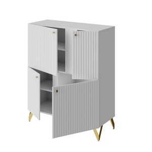 Комод объединяет четыре распашные дверцы, за которыми скрывается удобное внутреннее пространство с полками.