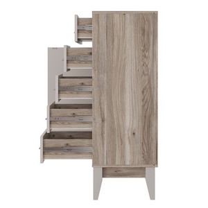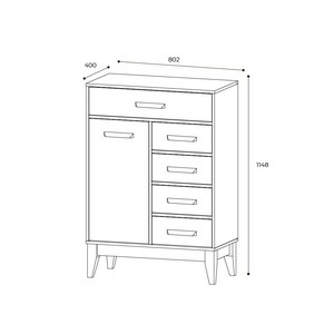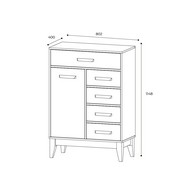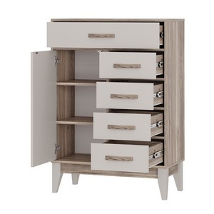 Комод КМ-13 Скандика имеет 5 выдвижных ящиков с плавным механизмом открытия и полкой за фасадом.