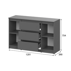 Комбинированный комод Денвер (графит) с двумя отсеками с глухими фасадами и тремя выдвижными ящиками по центру.