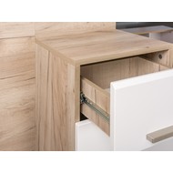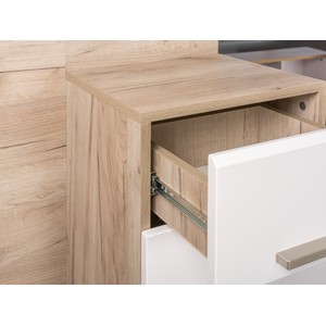 Комод Лайн оснащен двумя верхними выдвижными ящиками на шариковых направляющих, что обеспечивает плавное и легкое открывание.