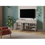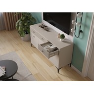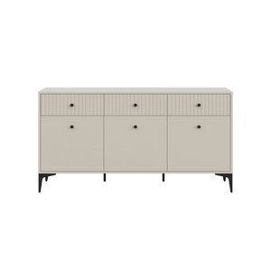 Комод MOON КМ-2.1 оснащен тремя вместительными выдвижными ящиками и тремя распашными дверцами, что обеспечивает удобное разделение пространства для хранения различных категорий вещей.
