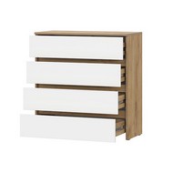 Комод Некст 1 с 4 ящиками (дуб золотой/белый) оснащен шариковыми направляющими и скрытой фурнитурой.