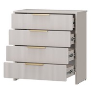Прочная фурнитура в виде торцевых ручек из АБС пластика золотистого цвета придают комоду элегантный вид.