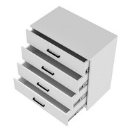 Широкий комод Фьюжн КМ-02 с 4-мя ящиками на направляющих плавного выдвижения поможет организовать хранение вещей в сложенном виде, постельных принадлежностей, аксессуаров.