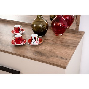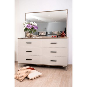 На столешнице комода можно разместить телевизор или укомплектовать модуль зеркалом из той же коллекции.
