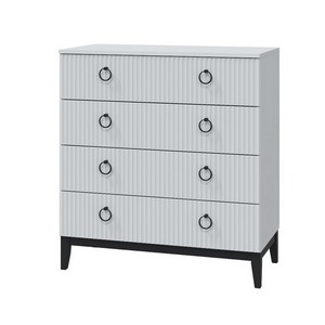 Комод с ящиками Шарлиз выполнен из ЛДСП и МДФ и имеет высокие черные опоры из массива березы, покрытые защитным лаком.