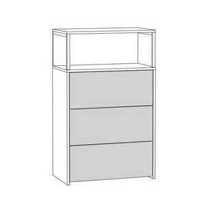Комод состоит из открытой ниши и трех выдвижных ящиков.