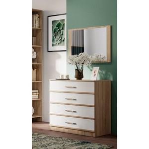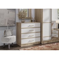 Комод оснащен 4 выдвижными ящиками на роликовых направляющих.