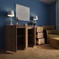 Комод Сура 1704 (дуб вотан) - создаст идеальный порядок. Вместительные ящики на бесшумных шариковых направляющих и удобные полки за распашными дверцами обеспечат удобное хранение.