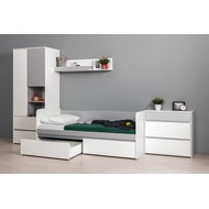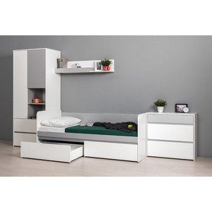 Комод выполнен в белом цвете и с акцентным серым цветом фасада верхнего ящика.