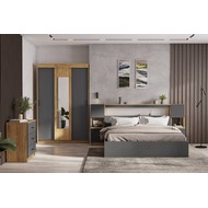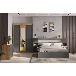 Корпус и фасад выполнен из ЛДСП в сочетании цветов дуб золотой и графит серый.