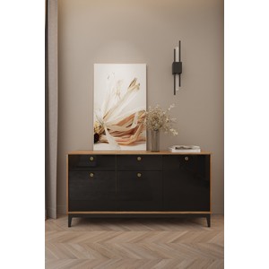 Комод КМ-1 BRASS (каштан арвадона, черный глянец)