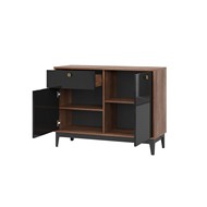 Две элегантные распашные дверцы скрывают просторное внутреннее пространство c полками и один выдвижной ящик с механизмом полного выдвижения.