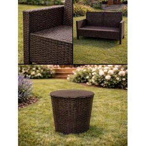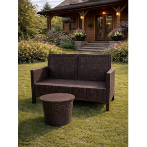 Комплект 2 садовых кресла, двухместный диван и столик под ротанг СадКо (темно-коричневый).