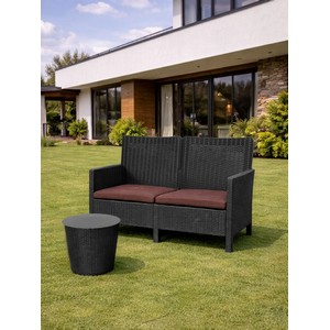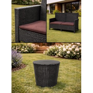 Комплект 2 садовых кресла, двухместный диван и столик под ротанг СадКо (темно-серый с коричневыми подушками)