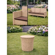 Комплект 2 садовых кресла, трехместный диван и столик под ротанг СадКо (бежевый с коричневыми подушками)