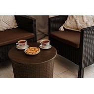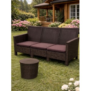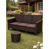 Комплект 2 садовых кресла, трехместный диван и столик под ротанг СадКо (темно-коричневый с коричневыми подушками)